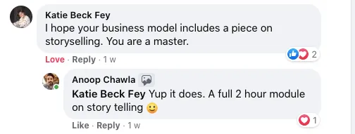 These compliments come from people who read my social content. They highlight my storytelling ability, which is one of the most critical ingredients in selling courses without feeling ‘salesy.’